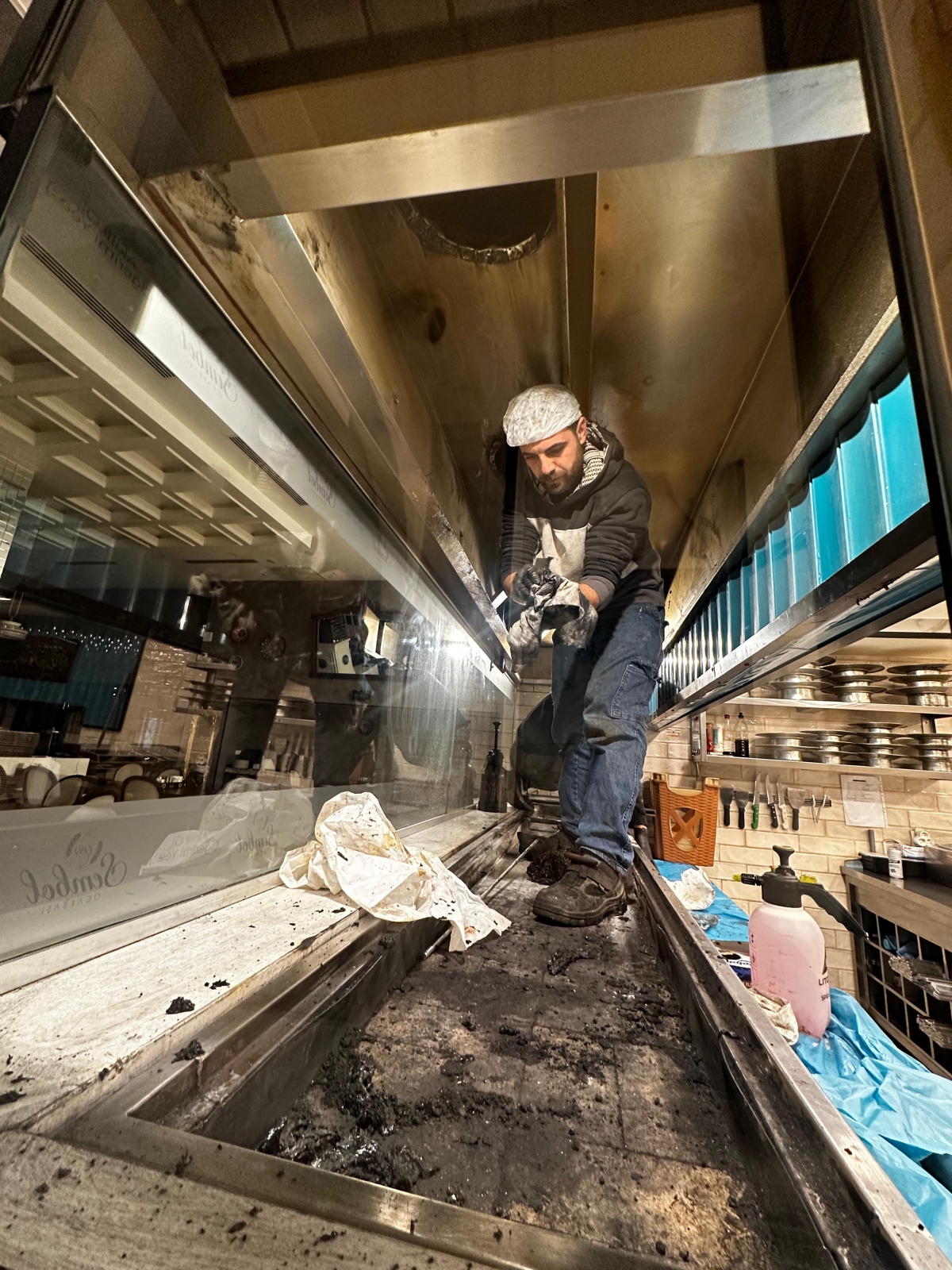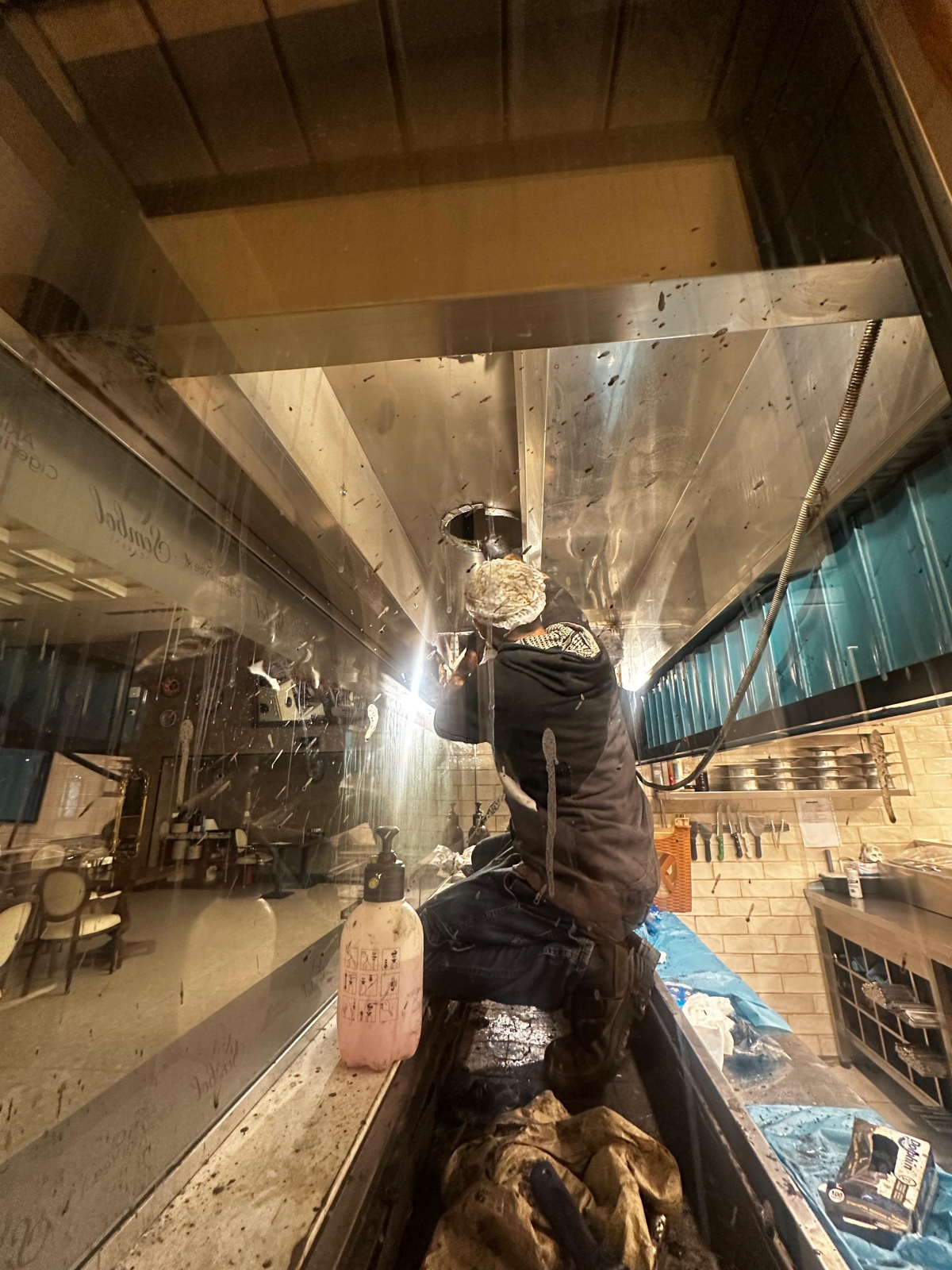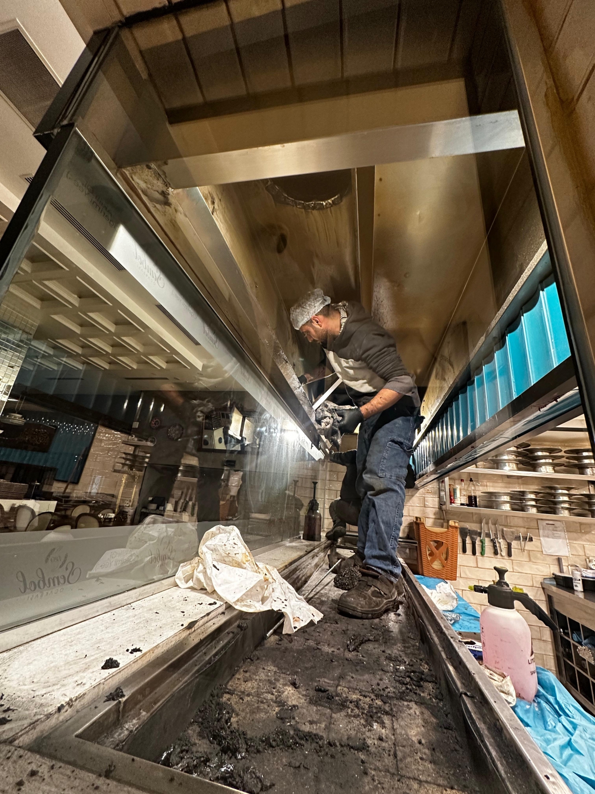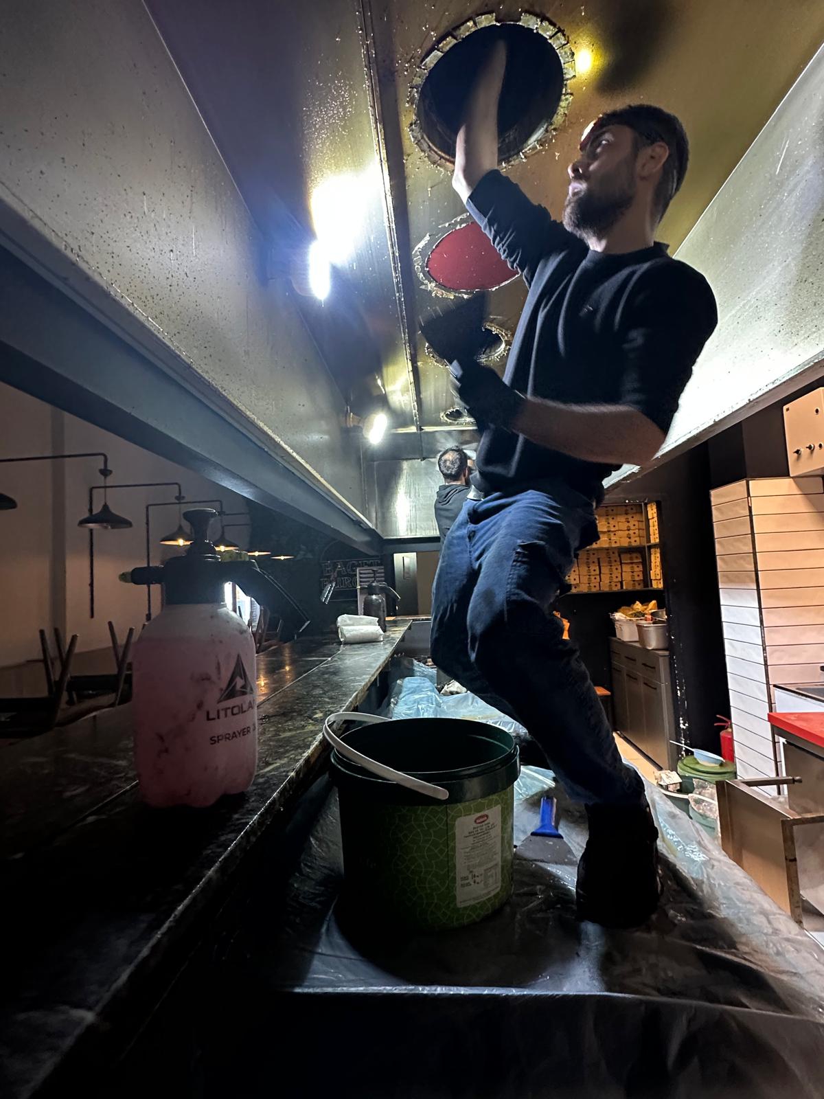 Yağ Çözücü Uygulaması: Endüstriyel sınıf, ağır yağ çözücü kimyasallar ile davlumbaz iç yüzeyindeki katılaşmış yağlar yumuşatılır.
